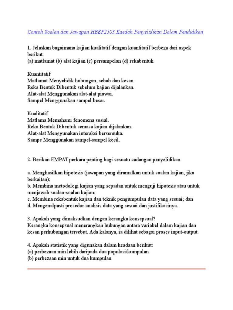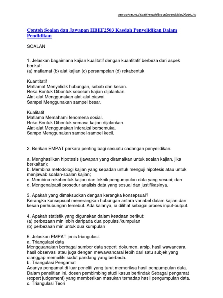 Contoh Soalan Dan Jawapan Hbef2503 Kaedah Penyelidikan Dalam Pendidikan Pdf
